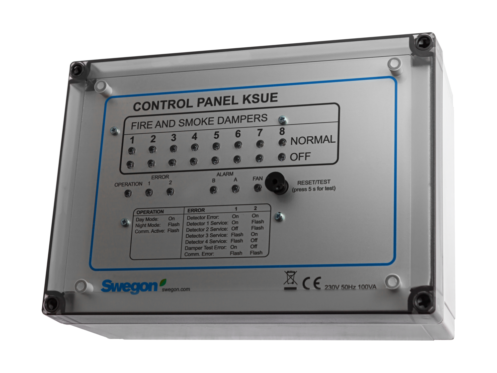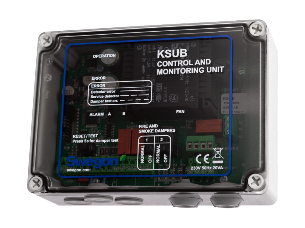 - Masterenhet för övervakning och hantering av brandspjäll samt tryckavlastningsspjäll. Stöd för 32st slavenheter med händelselogg för hela systemet. Hanterar brandgasfläkt och aggregat med ingångar för externt brandlarm, detektorer, mm.